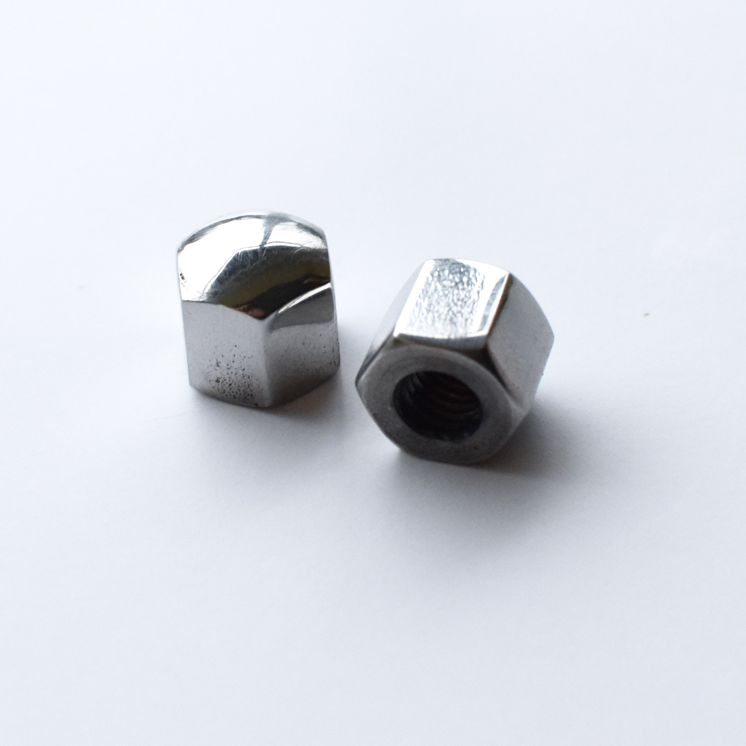 Set of 2-off, polished 1/4″ BSF extended rocker box hex nuts. Suitable for A50/A65.
